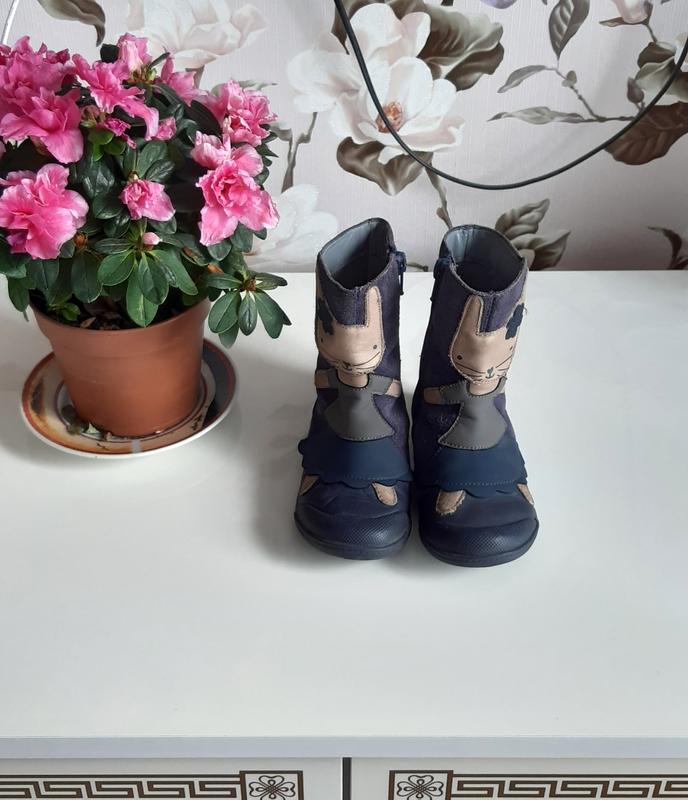 Кожаные демисезонные сапоги, качество супер, носочек проризиновый, материал натуральный замш. Есть нюансы, потертости на пяточках. Длинна стельки 15.5 см.