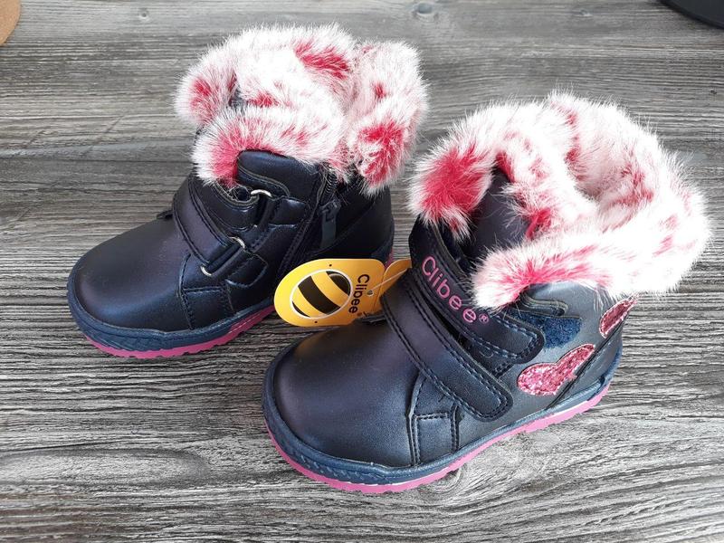 Зимові ботінки Clibee для найменших дівчаток. Дуже гарна, повномірна модель. Верх - екошкіра, всередині густа овчина (60% натуральна), устілка - утеплена. Заміри: 21р - 13,2 см 25р - 15,7 см