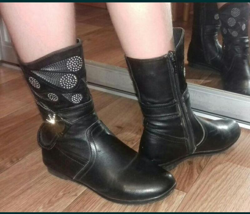 Сапожки черные в отличном состоянии. Не кремила перед фото, чтобы передать мелкие царапинки, которых после кремления абсолютно не видно. Очень классно смотрятся на ножке, особенно с юбочкой. Пересылаю Укрпочтой или новой почтой.