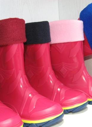 Пожалуйста ,сначала уточняйте наличие ,после оформляйте заказ. Размеры в наличии : 29р.-18,3см. по устілці; 34р.-21,4см. Размеры указаны по внутренней стельке утеплителя-сапожка. Утеплитель вставка эластичный тянется на 1-2см. по этому универсальный и подходит на несколько размеров сапогов.Все замеры делаем самостоятельно. Нужный цвет отворота указывайте в комментариях :темно-синий,серый ,синий,малиновый, розовый,темно-красный Детские резиновые сапоги ,модель разработана итальянскими дизайнерами и производится в Украине из сертифицированных , безопасных для здоровья материалов , не имеют посторонних запахов. Сапоги имеют литую оболочку из ПВХ .Подошва имеет отличный протектор. Высота сапога 20см.-24,0см. в зависимости от размера.Вставка утеплитель изготовлен из эластичного плотного флиса толщиной до 4мм., благодаря эластичности утеплитель хорошо тянется на 2-3 см. поэтому подходит на ножки с любым подъемом. Отправляем по всей Украине перевозчиками Новой почтой, Укрпочтой,оплата наложенным платежом( так как товар подлежит примерке отправляем по предоплате 51грн.-100грн.) или 100% на карту Приватбанк