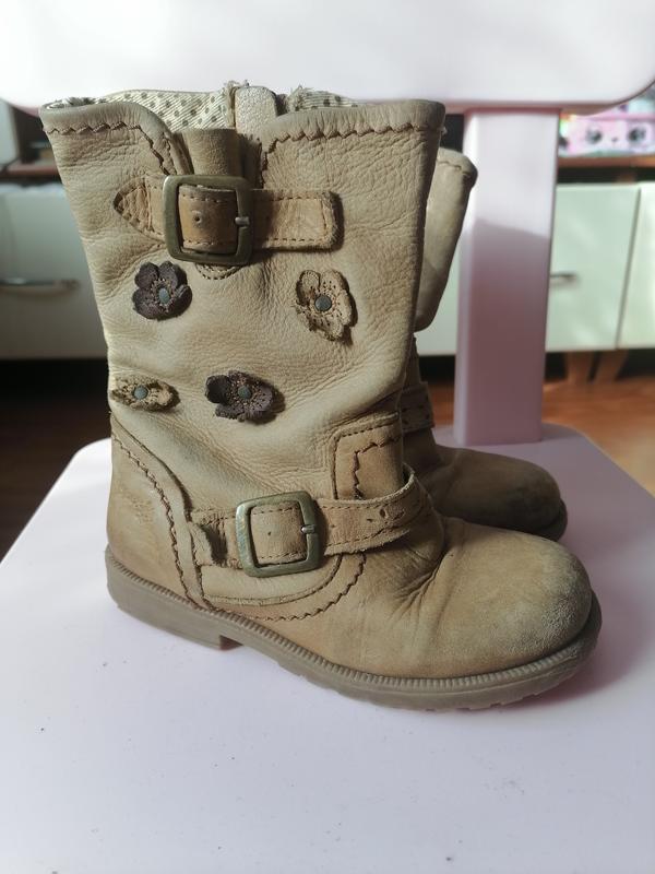 Продам ботиночки, кожа, втутри хлопковая подкладка. Англ размер 8.кожа мягкая, потёртости есть, но выглядят все равно супер. Пишите, скину фото на дочке.