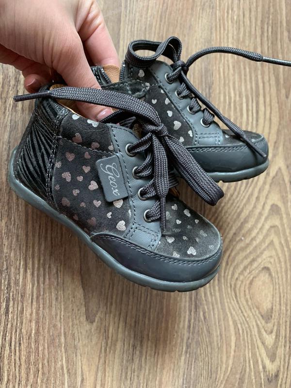 Черевики Geox, на дівчинку. Розмір вказаний 22. Дихаючі, легенькі, 100% шкіра зовні та всередині. Дуже зручні, мякенькі.