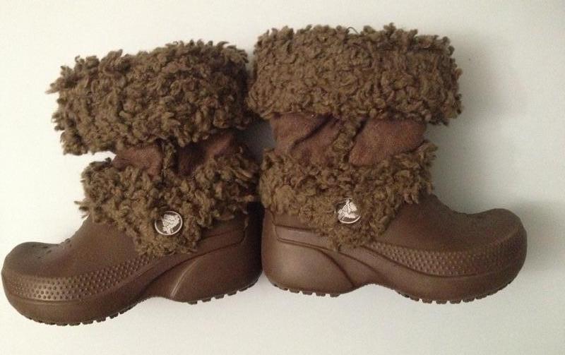 Сапожки Crocs 6С7 (23-24р.), на ножку около 13-14см, коричневого цвета, без утеплителя, верх из ткани под мех, в отличном состоянии.
