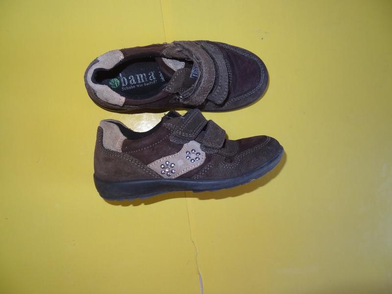 Очень качественные немецкие ботиночки фирмы « Bama”. Легкие, тепленькие, непромокаемые, удобно обувать,стелька и задник ортопедические. Носили с осени до начала зимы, нога не мёрзла. Сверху нубук и замша, внутри утеплитель паралончик. Липучки очень хорошие, крепкие. Стелька 17. 5 Размер 27. Мы остались очень довольны этими ботиночками.