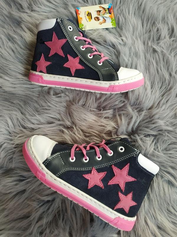 Суперкачественные Кожаные Ботинки RenBut (Польша)! Обувь оригинальная, от производителя, не подделка! Размерная сетка по стельке: 27 размер - 17,7 см 30 размер - 19,8 см 36 размер - 23,7 см ВАЖНО!!! Перед определением размера правильно померяйте длину стопы ребёнка! Поставте ножку на лист бумаги на пол и пометьте крайние точки стопы держа карандаш вертикально. Потом замеряйте длину между пометками. Не делайте замеры, когда ребёнок сидит и ножка находится в воздухе, так как на полу длина увеличивается. Описание товара Материал верха - натуральная кожа и замша , внутри - натуральная кожа, кожаная анатомическая стелька с супинатором , которая снимает нагрузку со стопы ребёнка во время ходьбы. Сами ботинки очень качественно пошиты, очень гибкие и хорошо фиксируют ножку шнуровками и молнией сбоку! Изготовитель детской обуви RenBut - многократный лауреат премии "Здоровая стопа" в Польше! ДОСТАВКА: по Украине доставка Новой почтой, Укрпочтой, Justin за счёт покупателя. Отправляем обувь в день заказа, если оплата произведена до 14.00. Во Львове обувь можно забрать самовывозом. ОПЛАТА: полная предоплата на карту Приватбанка. Возможен наложенный платёж Новой почтой, но с предоплатой стоимости доставки в две стороны. Эту сумму мы вычитаем от общей стоимости покупки.