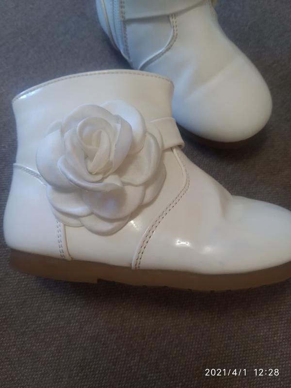 ботиночки лаковые бу, на малышку р. 23,по стельке14, 14.5,все целые одевали раза три, имеется небольшая царапина и на одном не ярко выраженые пятна отпечататок от другой обуви,на фото указано, не выводила, сильно в глаза не бросается, утеплены, смотрятся на ножке хорошо.