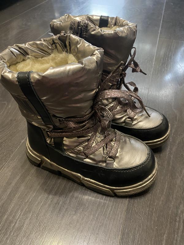 Очень тёплые зимние сапожки на овчине. Задник полужесткий. Сбоку молния. Отличнейшее состояние! Размер 28 полномерные. Стелька не достаётся.