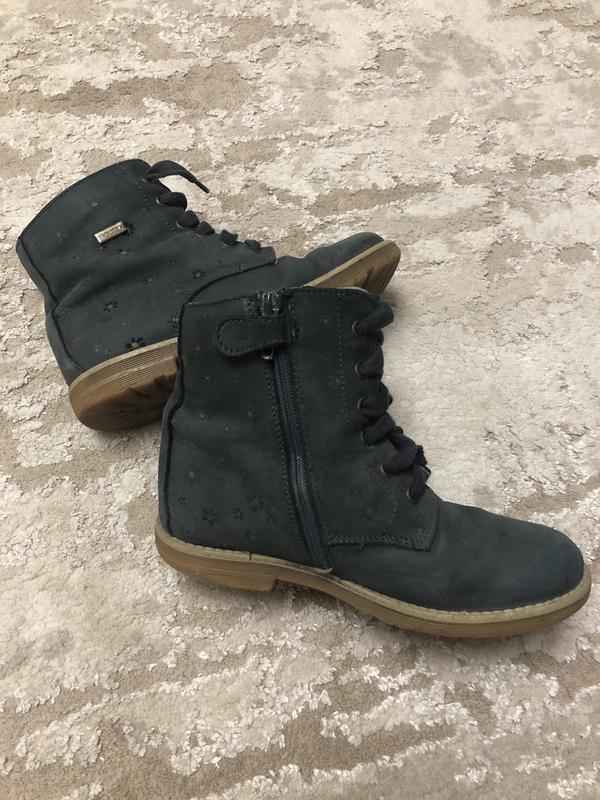 Хорошие,очень крепкие ботинки для девочки фирмы Miciotex.Нубук.Внутри-флис.Состояние-на фото.Немного потерян цвет,можно покрасить.Есть пару царапин.Учла в цене. Размер указан-31,Стелька-19,5см.