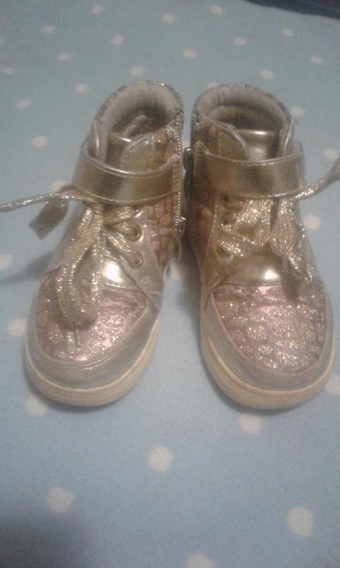 Яркие как солнышко ботиночки обязательно понравятся Вашей малышке. В хорошем состоянии, 25 размер, стелька 15см. Есть незначительные потертости, так как были самые любимые, но за счет блеска этого совсем не видно. Очень удобные, для детской площадки и садика то что надо. Доставка Укрпочта, Новая почта.