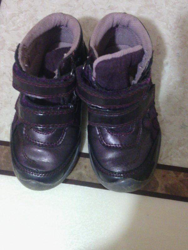Продаю наші шкіряні демиботиночки , привезені з Німеччини. Дуже зручні в носінні через прорезиненого трохи піднятого носка і лепучек(підходять на високий підйом і відповідно трохи розширюють ніжку. Дихаюча підкладка мембранна сіточка.Розмір 23, по устілці 15 див. Черевички бордово-фіолетового кольору з квітковим аплікацією. З нюансів: злегка подерті шкарпетки, (майже не видно фотоапарат не передає).Липучки цілі.