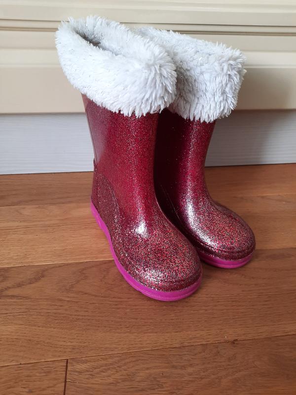 Дуже гарні гумачки для дівчинки. Стан практично ідеальний. Не утеплені, хутро в разі потреби можна зняти. Ми спочатку так і думали, але минуле літо було таке, що з хутром досить актуально. Колір рожевий з блискітками. Після однієї дитини. Купляли нові. Не протікають.