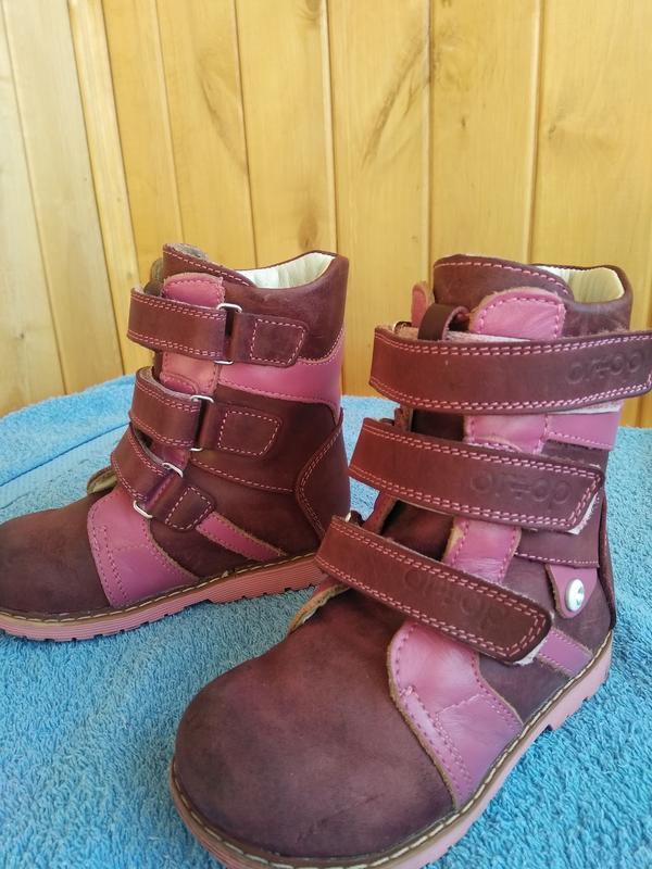 Ортопедические сапоги. В хорошем состоянии. Носились мало.Есть не значительные царапины на носках. Сверху натур наубук,внутри натур мех. Стелька с супинатором. Жёсткий задник ,каблук Томаса. Покупались за 1600