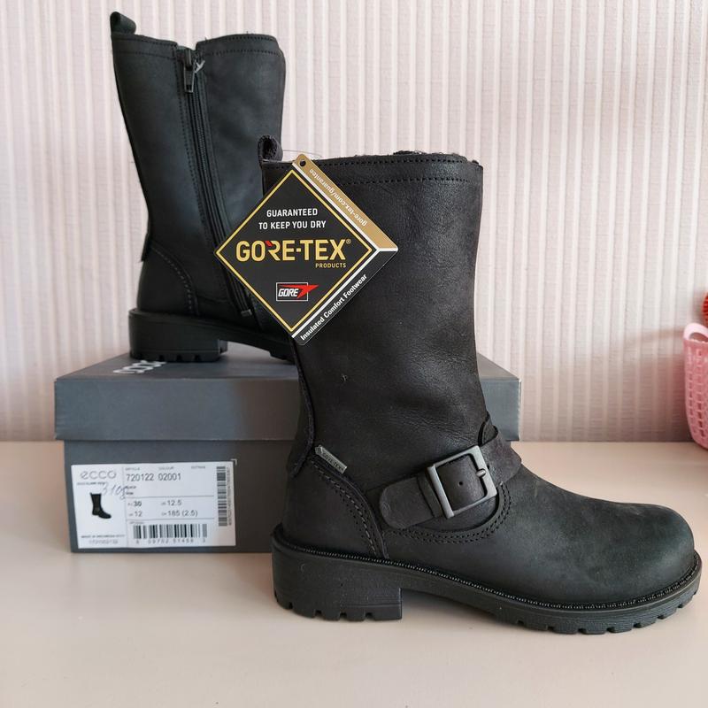 Детские сапоги ЕССО с мембраной GORE TEX, благодаря которой ножка не промокнет и не будет преть. Материал нубук. Демисезон покупали дочке, но нога сильно выросла и не успели поносить. Новые