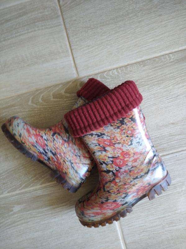 резиновые сапожки в цветочек со съёмным утеплителем по стельке 15,5 см
