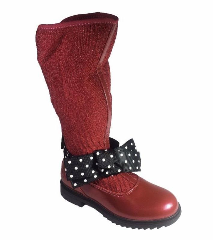 Шикарные кожа лаковые сапоги с плотным текстильным стрейчевым голенищем, сзади на молнии. Съемный бант - украшение. Дорога итальянская марка отличного качества, красивая яркая подарочная коробка на банте, полномерные, не китай