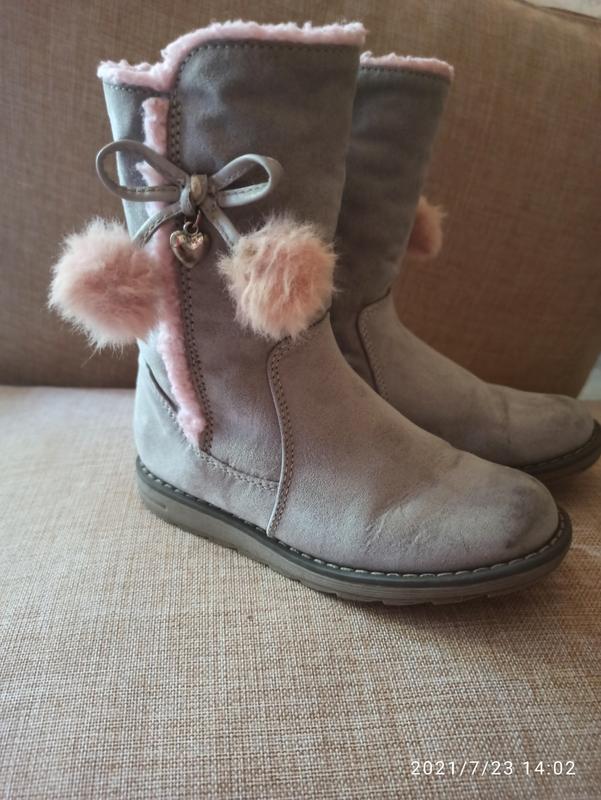 Сапожки демисезонные Capcake в очень хорошем состоянии, единственный нюанс , виден на 4 фото, на шве ткань разошлась, но это не влияет на носку