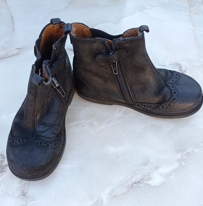 Детские кожаные челси Размер 25 (стелька 17+- не удобно вымерять) Состояние хорошее, надо только стереть клей от скотча когда красила заклеила скотчем, и немного сзади скошенны