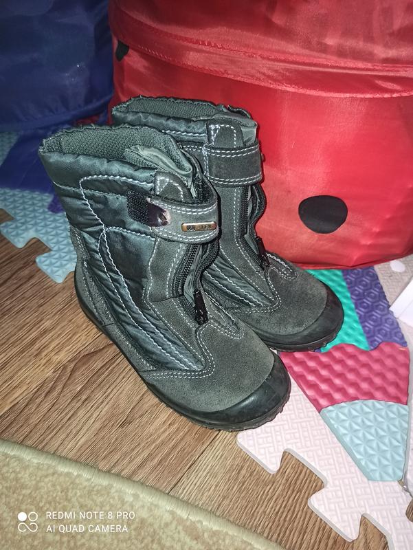 Розмір ~ 27. Устілка від краю до краю ~ 17,8 см; ширина ~ 6,5 см; устілка виймається. Застібка ~ змійка + липучка. Стан ~ дуже хороший, без дефектів. Склад ~ натуральний замш + текстиль; матеріал всередині ~ хутряня підкладка. меховая подкладка + мембрана.
