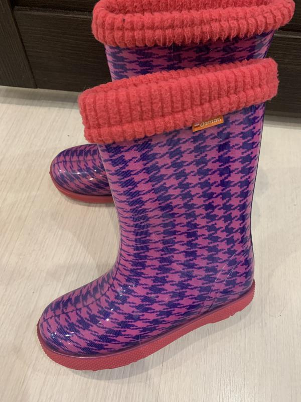 Сапожки в отличном состоянии без дефектов. Размер 30/31 по стельке 19,5 см Детские резиновые сапоги Demar (Демар) имеют литую оболочку из ПВХ и съёмный утеплённый чулок из полиэстера, который согревает ногу. Может быть постиран при температуре 40 градусов. Если Вам не по душе синтетический материал, Вы легко можете вынуть чулок из сапога и использовать обычный шерстяной носок.