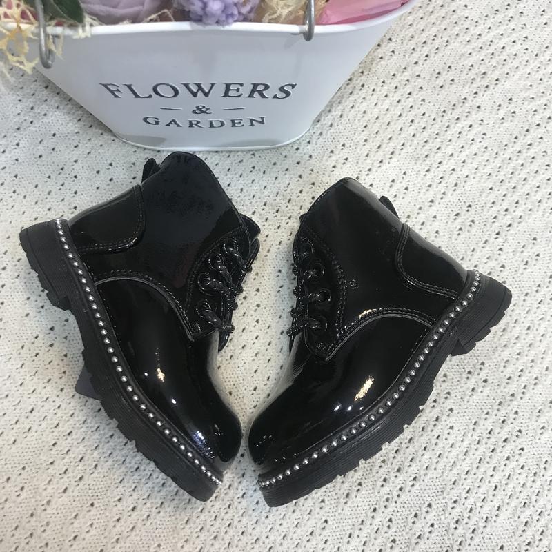 Верх лак, є шнурівка і блискавка, всередині утеплені.Заміри: 22-14 см