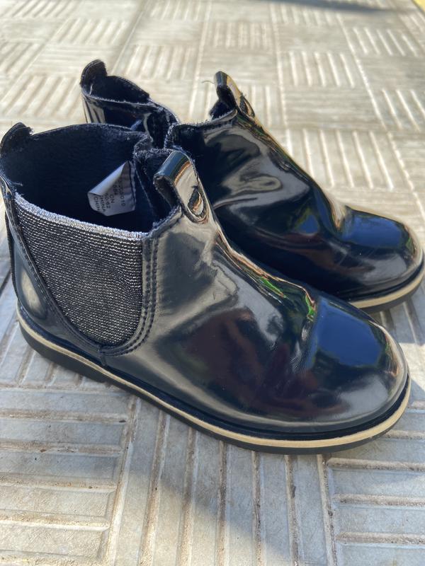 Ботинки 24 размер на девочку, синий лак, из дефектов - потёрты пятки на подошве. Не текут!