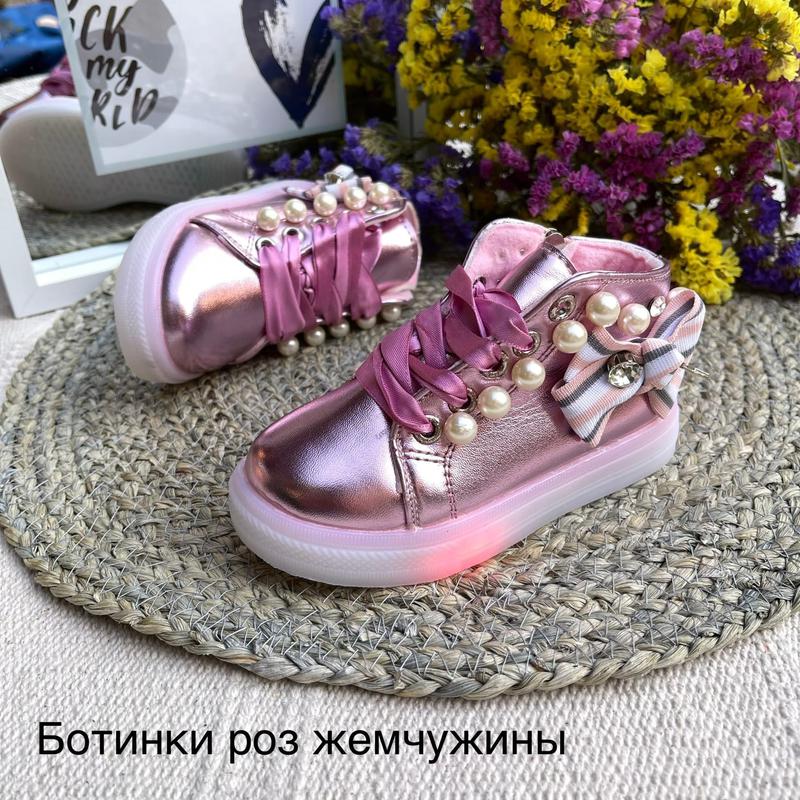 Ніжні демі черевички зі світною підошвою! Відмінна якість! Осінні - утеплені флісом! Устілка текстиль. Застібка - збоку змійка, спереду – шнурівка. Прикрашені з боків - перлинами, камінням і бантиком! ✔ Розміри: 25- 15,**********,2 28- 17,**********,8 ✔.крох