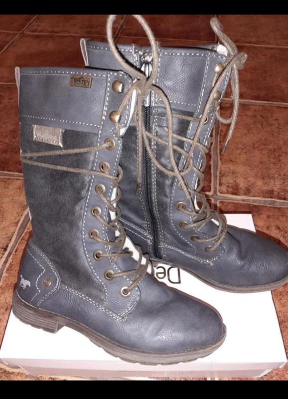 Дитячі сапоги Mustang. Брендовий знак "кінь" Якість, стиль! Достатньо теплі на осінь, ранню весну, теплу зиму.Є хутро всередині. Молнія збоку, тому зав'язувати шнурки не доведеться. Розмір 32. Стан нових.