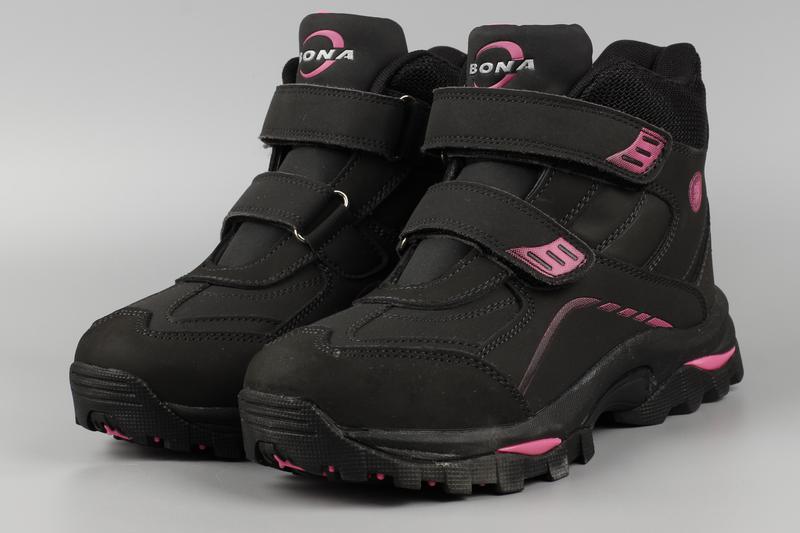 Ботинки детские черные с розовым кожаные bona 858p-9 бона размеры 31 32 33 36