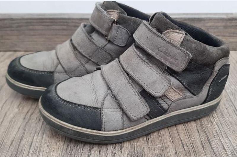 Демисезонные ботинки Clarks (Кларкс). р.29. Натуральная кожа, нубук. Непромокаемые с технологией Gore-Tex. В очень хорошем состоянии. Крепкие, целые. Покупались новыми. Липучки крепкие, целые. Немного стерта подошва на пятке. Стелька 18,7см.