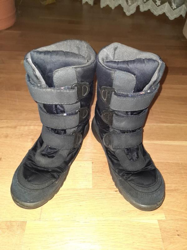 Зимние сапожки 19,5-20см стелька. Высота сапожка 18см. Состояние очень хорошее, все целое. Цвет темно-синий. Застёжка липучки.Фирма RICHTER. Больше подайдет на узкую ногу девочки.
