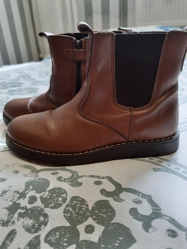 Носили сезон Фирменные Кожаные Состояние отличное На фото очень хорошо видно, не стоптаны, кода ровная, замок рабочий, аккуратно носили Размер указан 32 но реально на 33 Длина стельки 21-21.5 не вынимается Длина по наружной подошве 23 Носили когда ножка была 33-34 размера Задник твердый, ножку держат прекрасно В стиле бренда Зара Название фирмы затерлось, покупали в Германии