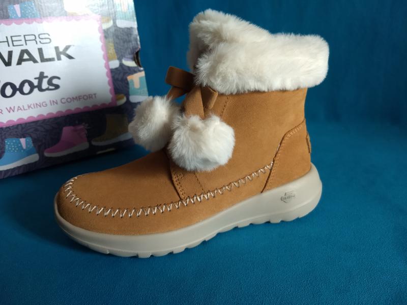 Дуже стильні зимові черевики на дівчинку-підлітка від Skechers. Оригінал, нові у фірмовій коробці. Зроблені з замші. Всередині - підкладка та устілка на флісовій підкладці. Оригінальна шнурівка з хутряними помпонами. Довжина устілки - 22.5 див.