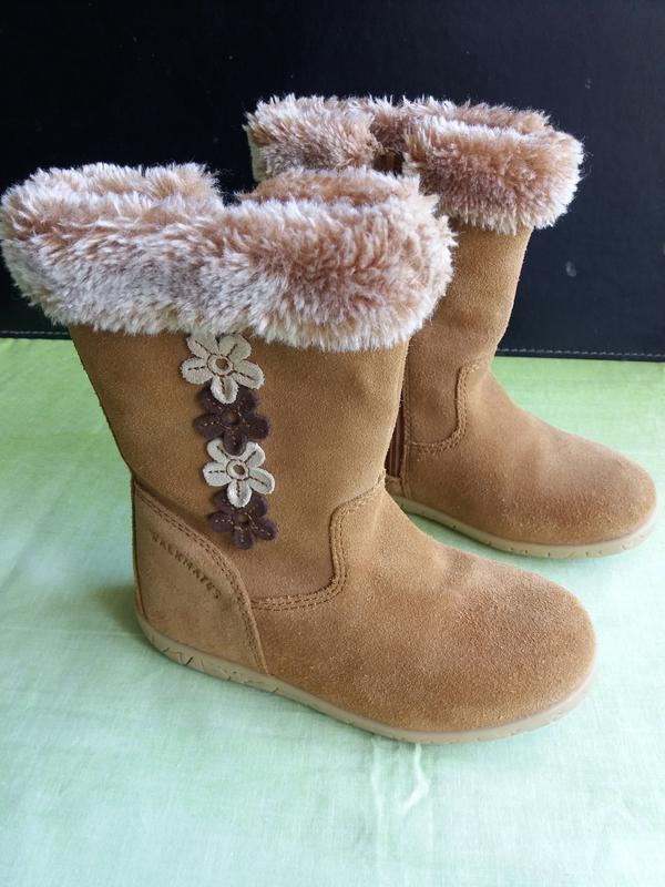 Сапоги утепленные Walkmates by Marks & Spencer (M&S) uk.9, длина стельки 16.5 - 16,8 см. Кожаные (замша). Стелька не вынимается. Внутри сапожки с искусственным мехом. Сбоку молния. Высота сапожка - 18 см. Подойдут на узкую и стандартную полноту ножки. Состояние идеальное. Есть вопросы, спрашивайте.