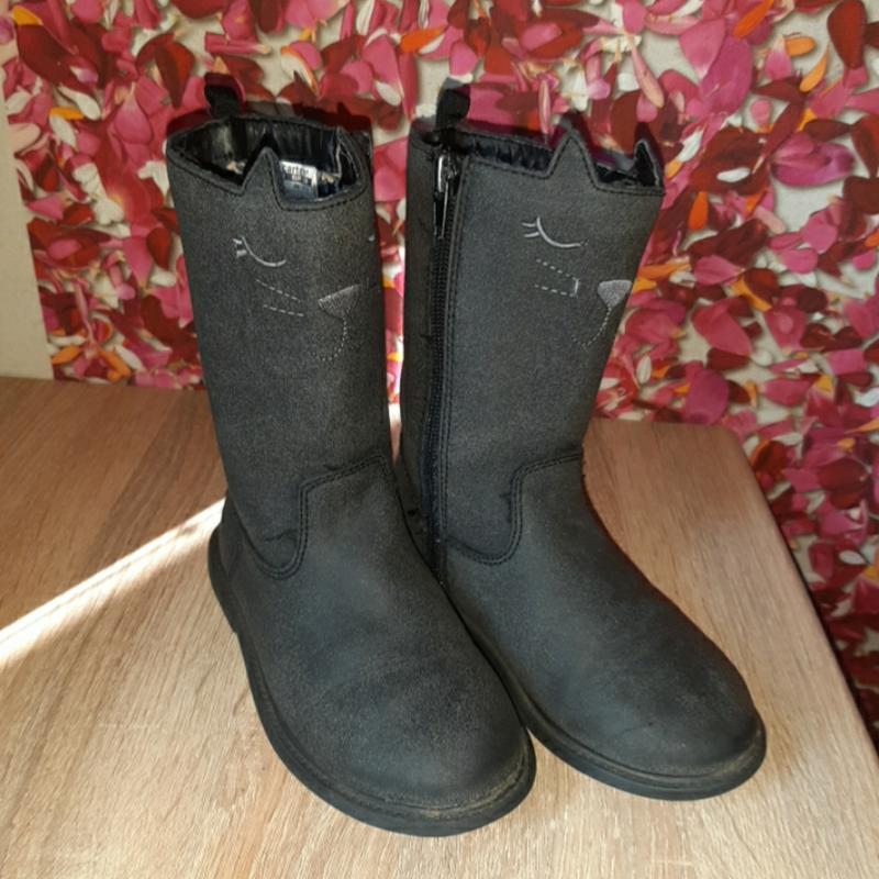 осінні чобітки для дівчинки, з переду вишита котяча мордочка, шкіряні.