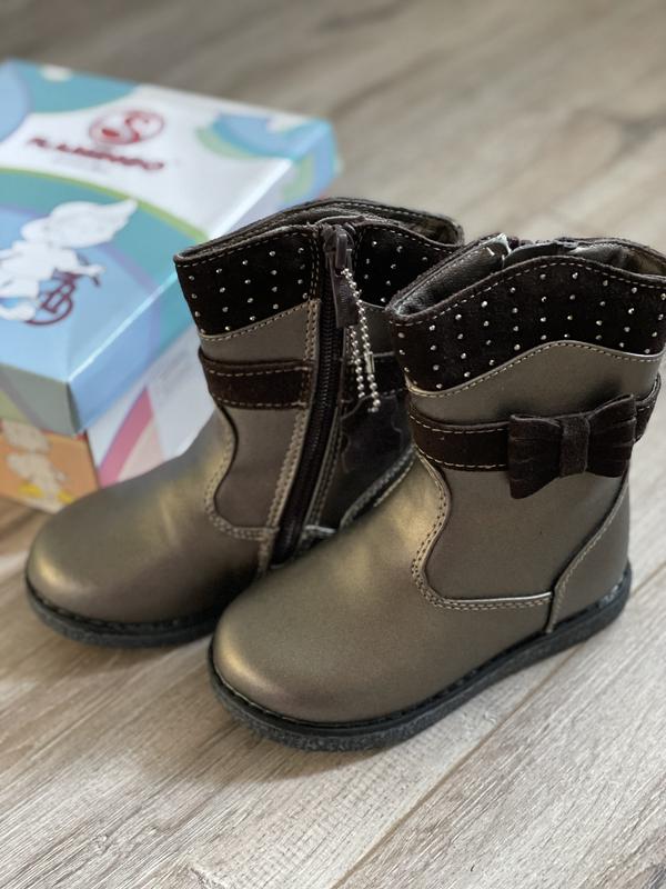 Великолепные кожаные ботиночки от тм Flamingo! Материал - кожа, внутри утеплённые, на холодную осень. Застежка - молния сбоку, жесткий задник. Подошва прошита. Цвет вживую очень красивый - бронза, переливается на солнце. Стелька 15 см Модель идеальна для маленьких модниц. Хорошо смотрится с джинсовыми брюками, с платьем и юбками.