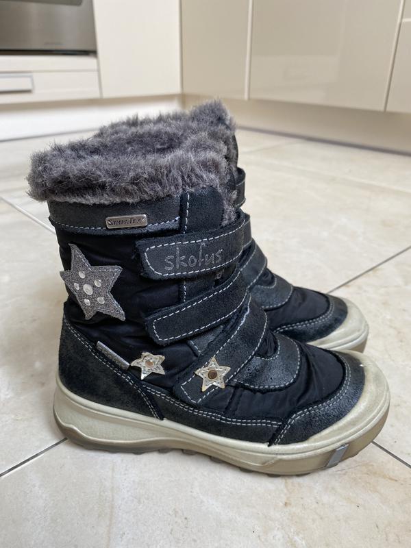 Зимние тёплые термосапожки с мембраной sympatex 30 размера, 19 см стелька в отличном состоянии без дефектов и внутренних повреждений. Подошва полиуретан.Есть другая обувь на такой возраст в моих объявлениях.