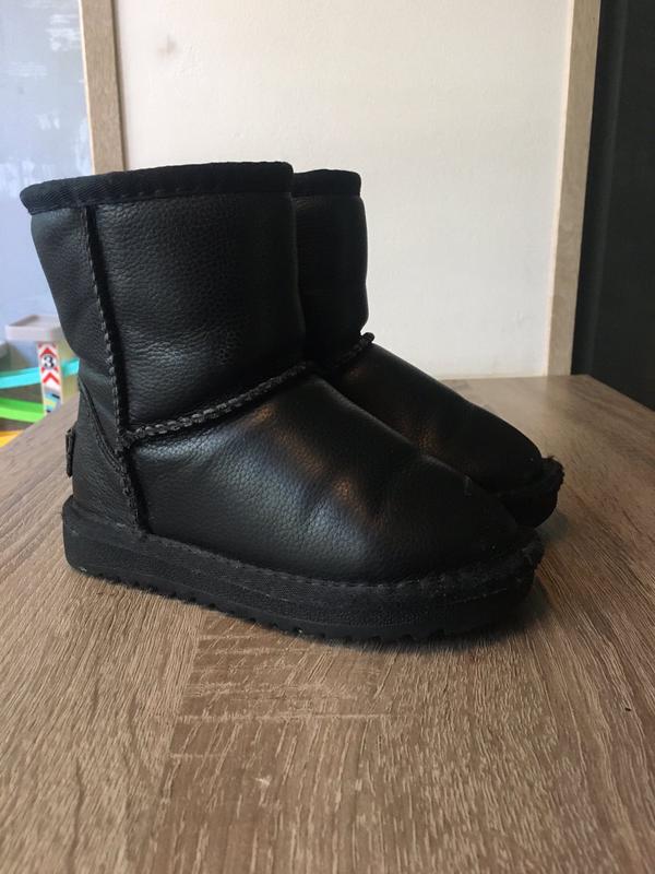 Дитячі чобітки,типу ugg,дуже теплі,верх натуральна шкіра,всередині натуральна овчина,в дуже хорошому стані,єдиний нюанс вказаний на фото,спеціально не запастували,щоб було добре видно.Розмір 26. Завітайте до мене на сторінку,можливо знайдете,щось цікаве для малюка або для вас,усі речі куплені за кордоном,постійне оновлення.
