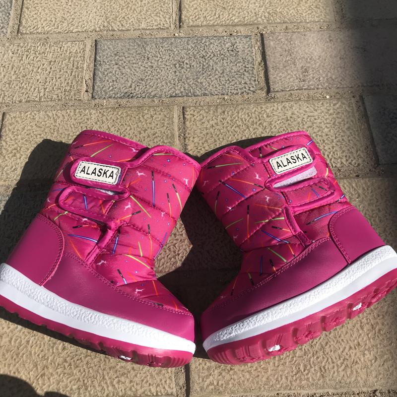 верх водоотталкивающая ткань, есть липучка, утеплитель-штучный мех. Замеры: 26-15,8 см стелька