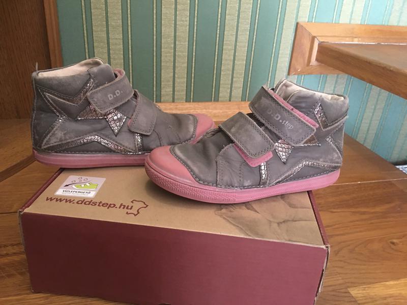 Дуже якісні повністю шкіряні черевички.32 р, 19,5-20 см устілка, легенькі. Шкіра з потертостями( така модель). Стан дуже хороший, дефектів немає. Виробник Угорщина.