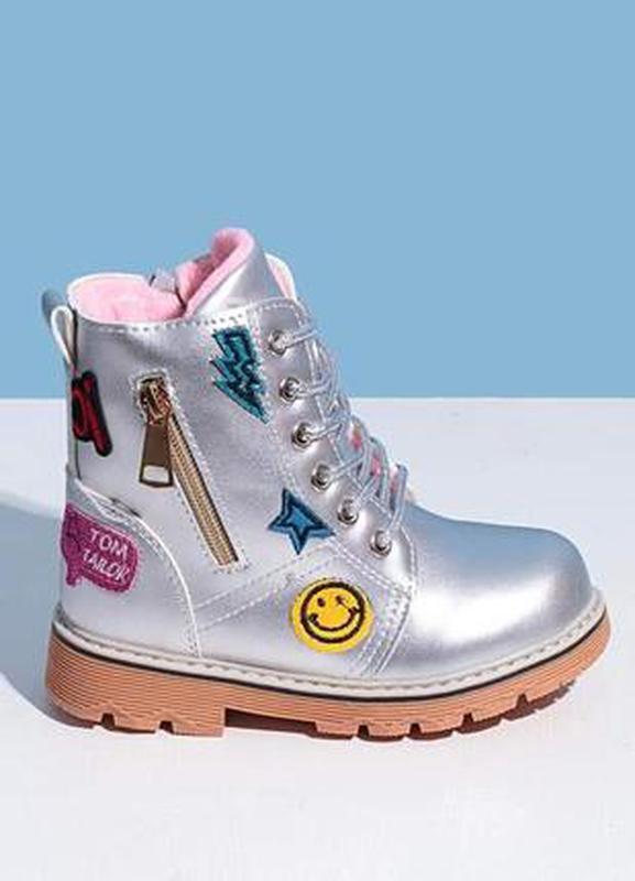 Стильные серебристые зимние ботиночки для девочки.🥰 👉Мех искуственный.Модель с утолщенной подошвой , благодаря чему ребёнку будет комфортно в прохладную и мокрую погоду.Ботинки украшены стильными нашивками . 👉Модель на шнуровке ,но для удобства в перебувании сбоку предусмотрена молния . ✅ Размер : 28 (☝️по стельке 17,5 см.)