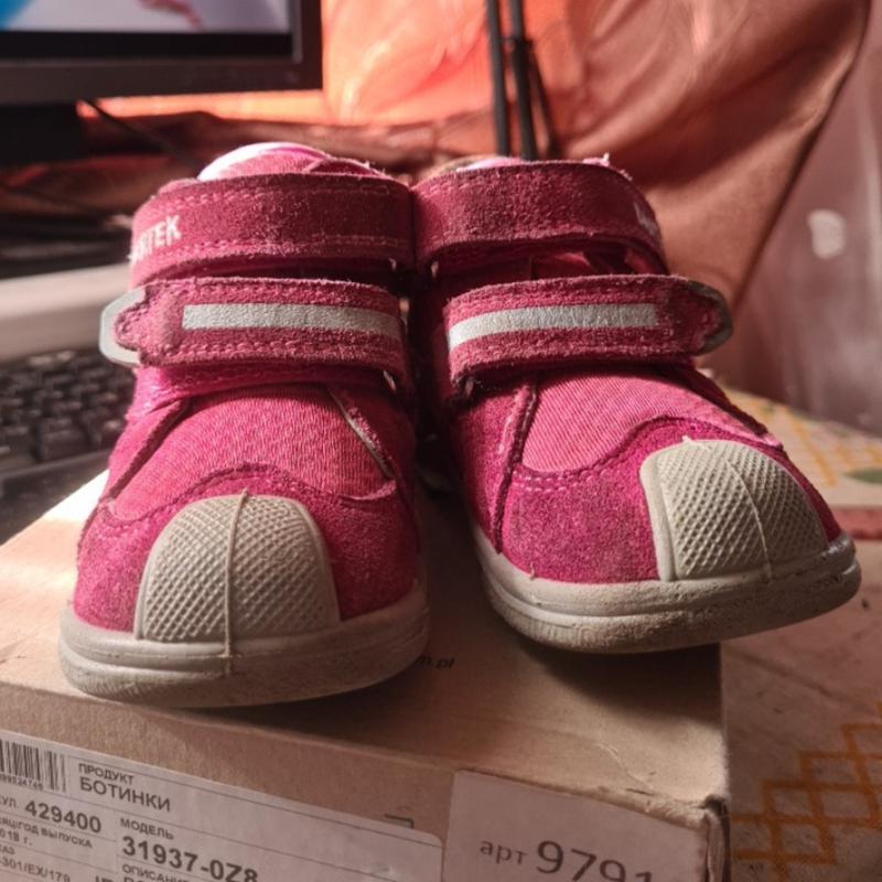 Размер 22, внутри кожа, верх текстиль и замша, ребёнок носил не долго, состояние хорошее