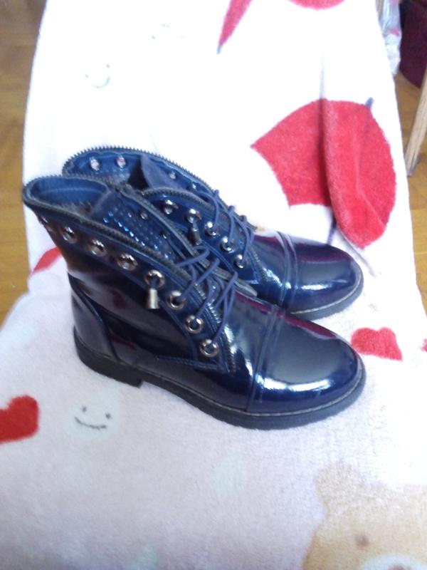 Модные лаковые ботинки 32 р, в отличном состоянии, внутри не много утеплены, только есть пару мелких зацепов на носке, качевство лака, подошвы супер, замки работают отлично, замеры сделаю