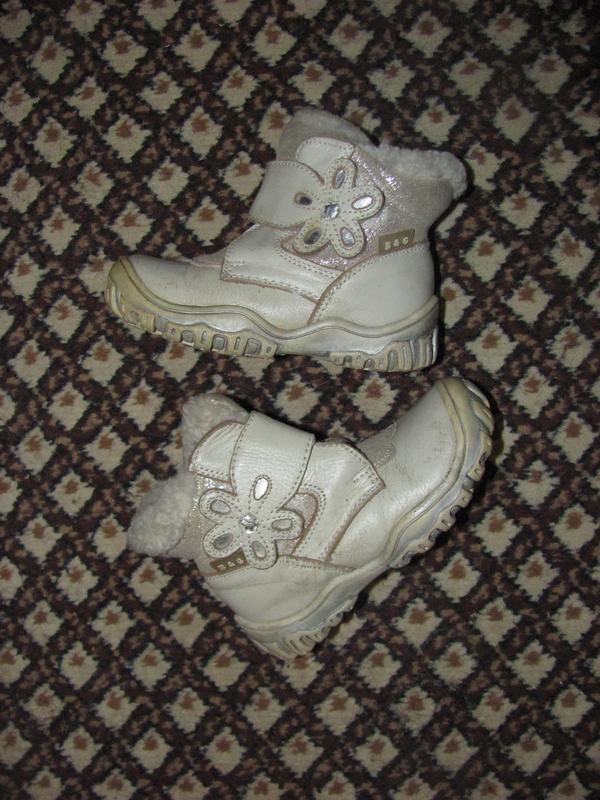 Классные тёплые сапоги B&G, натуральная кожа, утеплитель - цигейка и шерсть, застёгиваются на липучки - рабочие, состояние очень хорошее, только местами за счёт цвета видны потёртостии небольшой счёс на левом носке, в остальном - идеально, и подошва, и внутри. Стелька термо с фольгированной прослойкой, р.24 - 15,5 см.