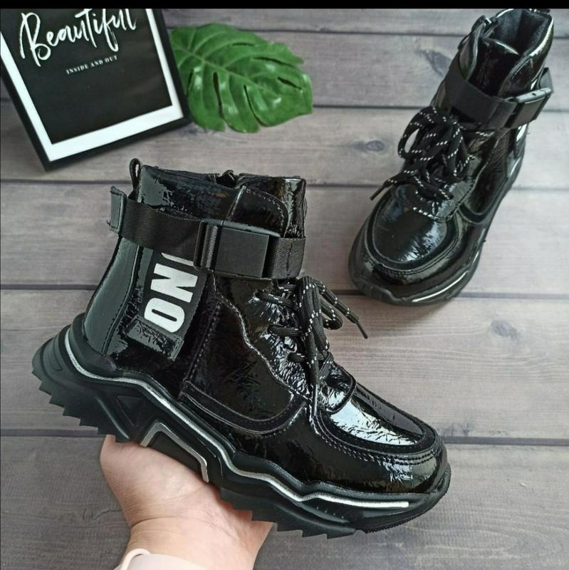 В НАЯВНОСТІ !!! Крутезні демі ботинки!!! Матеріал лакована екошкіра. Середина утеплена флісом. Застібка шнурівка+замок. Якість бомба 36-23.1