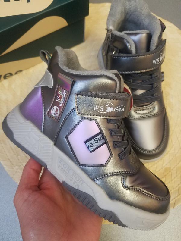 Утеплені хайтопи для дівчинки в графітовому кольорі. Шкіра комбінована. Всередині утеплені м'яким штучним хутром. Устілка також утеплена. Дуже зручні, стильні та якісні !!! 27 р - 17,5 см 28 р - 18,5 см 29 р - 19 см ( 2 шт ) 30 р - 19,5 см 31 р - 20 см - продано 32 р - 21 см