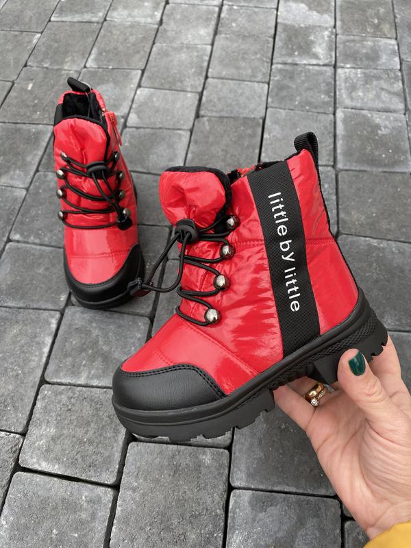 Яскраві зимові дутіки для малечі! Легкі, зручні та тепленькі! 🍒 Ззовні - якісна щільна плащівка. 🍒 В середині - натуральна вовна та штучне хутро 60/40%. 🍒 Фіксація на еластичні шнурівки, та боковий замочок! Розміри та заміри: 22 - 14,8 см 23 - 15,5 см 25 - 17 см