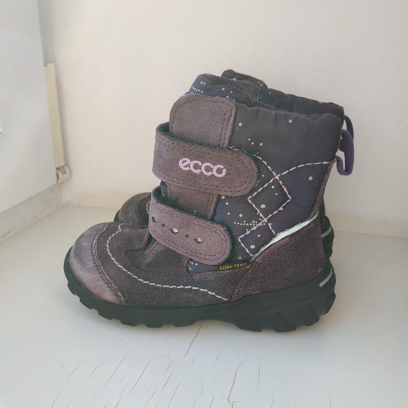 Зимние кожаные ботинки Ecco 24 размера, стелька 15 см. до загиба, смотрите замер на фото. 16 см с загибом. Материал верха натуральная кожа, натуральная замша, термозащита. Липучки липнут отлично, чистые. В средине натуральный мех. Ботинки без запаха, помытые перед продажей. На носках есть потертости. Очень хорошее состояние.