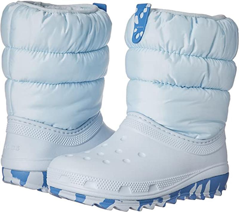 Новинка, сезон - зима 2021/2022 Зимние непромокаемые сапоги Crocs Classic Neo Puff Boot K , дутики, крокс, кроксы, crocband Цвет - Mineral / Blue В наличии: J1, евро 32-33, на стопу 20 см, согласно рекомендаций производителя J2 - евро 33-34, на стопу 20,8 см, согласно рекомендаций производителя Зимние детские сапожки Crocs Classic Neo Puff Boot K сохранят ножки ребенка в тепле и уюте в зимнюю стужу. Невероятно легкие – удобство при ходьбе. Теплые – современные материалы для комфортного микроклимата. Практичные – легко ухаживать. Описание модели Winter Puff Boot Kids: верх из прочного нейлона, подкладка из густого искусственного меха на голенище для сохранения тепла теплая текстильная подкладка по всей внутренней поверхности литая непромокаемая калоша из материала Croslite™ для легкости и комфорта Dual Crocs Comfort™: Прекрасно поддерживают. Мягкие. Комфорт на весь день