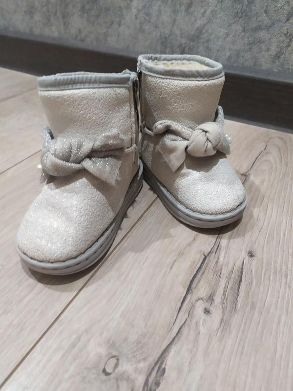 чоботи в хорошому стані, з недоліків притоптался хутро,затерлася тканина на бантиках і трошки стерлася підошва. в ціні все враховано. довжина устілки 15,5 см