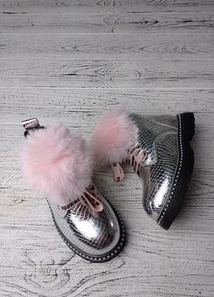 Якщо Ви шукаєте святковий варіант це саме він виповнені з еко шкіри мега круті демі черевики утеплені флісом є замочок + шнурівка м'яке рожеве штучне хутро 21-13,3 см 22-13,8 см 23-14,3 см 24-14,8 25-15 см,3 см 565 грн